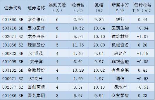 表:連續(xù)上漲3日且今日收盤漲停股一覽