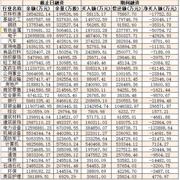 表:7月28 日申萬(wàn)一級(jí)行業(yè)兩融交易情況