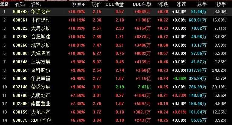 具體看,從資金流向方面,截至7月31日上午收盤(pán),房地產(chǎn)開(kāi)發(fā)板塊漲幅居前,達(dá)3.90%,資金凈流入達(dá)178.53億元。其中,華遠(yuǎn)地產(chǎn)(600743)、中南建設(shè)(000961)、天房發(fā)展(600322)、合肥城建(002208)、城建發(fā)展(600266)、天健集團(tuán)(000090)等多只概念股集體漲停。