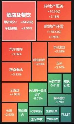 熱點(diǎn)方面,據(jù)同花順(300033)熱門(mén)板塊統(tǒng)計(jì),截至7月31日上午收盤(pán),酒店及餐飲、房地產(chǎn)服務(wù)、房地產(chǎn)開(kāi)發(fā)等板塊漲幅居前。另外,芬太尼、生物疫苗等板塊跌幅居前。