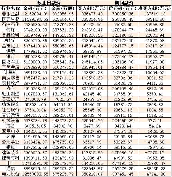 表:8月2日申萬一級行業(yè)兩融交易情況