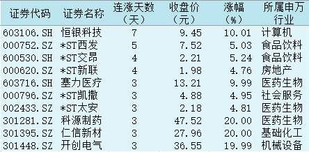 表:連續(xù)3日上漲且今日收盤漲停股一覽