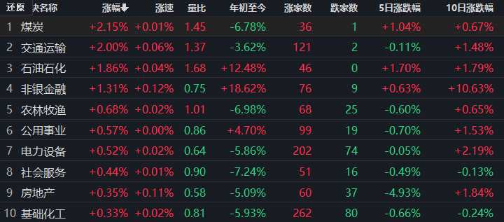 煤炭行業(yè)漲超2%