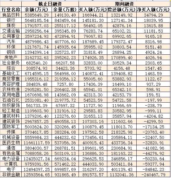 表:8月11日申萬一級(jí)行業(yè)兩融交易情況: