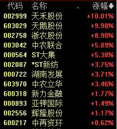 今天上午,供銷社板塊大漲,天禾股份(002999)、天鵝股份(603029)等個(gè)股漲停。