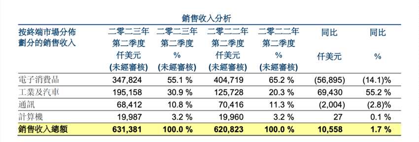 除此之外,從需求端來看,公司在電子消費品和通訊產品的銷售額上也出現了下滑,降幅分別達到了14.1%和2.8%。