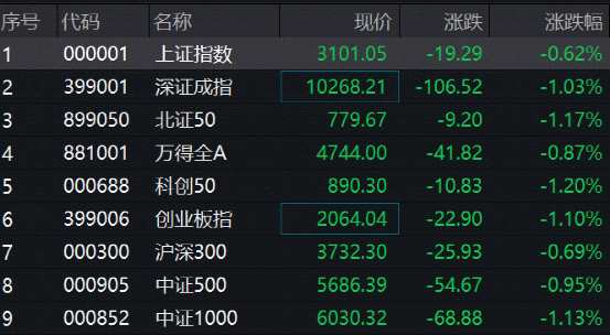 8月23日上午,A股主要指數(shù)低開:上證指數(shù)跌0.13%,深證成指跌0.22%,創(chuàng)業(yè)板指跌0.27%。上午市場持續(xù)走低,上證指數(shù)盤中跌破3100點。截至發(fā)稿,深證成指、創(chuàng)業(yè)板指均跌超1% 。