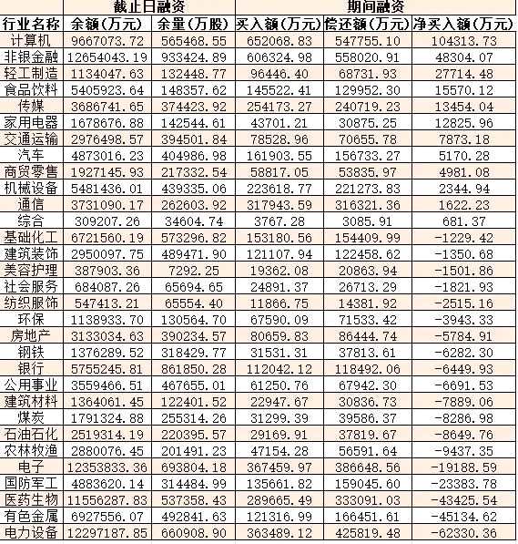 表:8月22日申萬(wàn)一級(jí)行業(yè)兩融交易情況