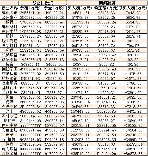表:8月23日申萬一級行業(yè)兩融交易情況