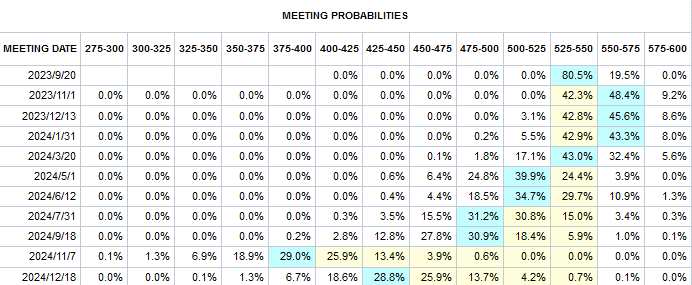 鮑威爾警告通脹依舊過高,明確指出“若經濟和就業(yè)市場不降溫會繼續(xù)加息”。他也駁斥短期內降息可能,稱2%仍為通脹目標不變?!靶旅缆?lián)儲通訊社”評價其講話體現(xiàn)了一種風險管理模式下的“謹慎”態(tài)度。市場對年內還有一次加息的預期升溫,9月按兵不動仍為主流觀點。
