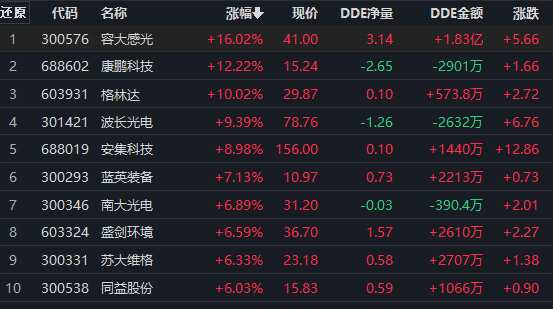 行業(yè)方面,截至8月31日上午收盤,電子化學品、貴金屬、中藥、半導體及元件、光學光電子、小家電等行業(yè)上漲。房地產、教育、養(yǎng)殖業(yè)、傳媒等跌幅居前。其中房地產開發(fā)行業(yè)普跌,城建發(fā)展(600266)、天健集團(000090)、首開股份(600376)等10只個股跌超7%。熱點方面,光刻膠概念開盤后快速拉升,漲2.70%。板塊內容大感光(300576)、康鵬科技漲超10%;格林達(603931)漲停;另有【波長光電(301421)、股吧】(301421)、安集科技、藍英裝備(300293)等漲超7%。