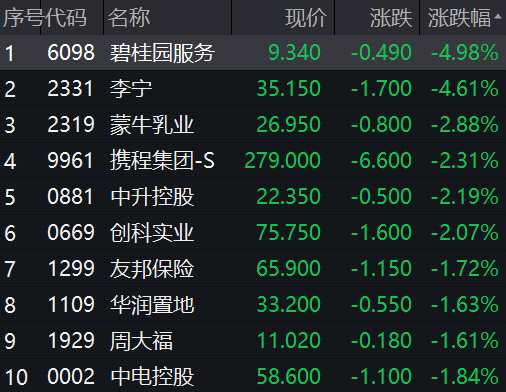 港股今日早間高開:恒指漲0.51%,恒生國企漲0.55%,恒生科技漲0.59%。截至發(fā)稿漲幅均已回吐,恒指、恒生國企轉綠,碧桂園、李寧領跌恒指。
