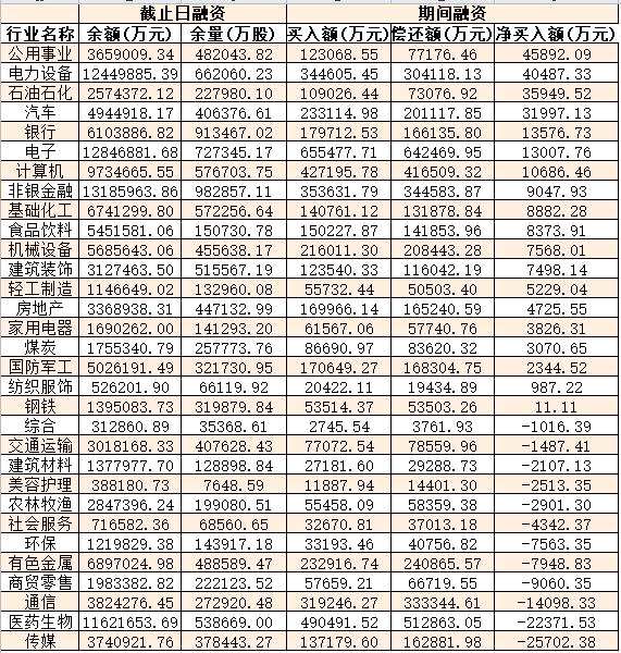 表:9月15日申萬(wàn)一級(jí)行業(yè)兩融交易情況: