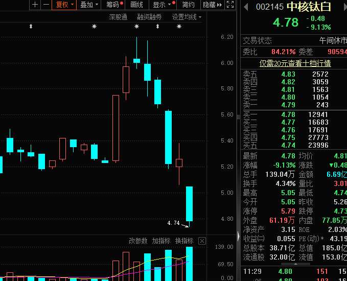 機構割肉,中核鈦白早盤重挫