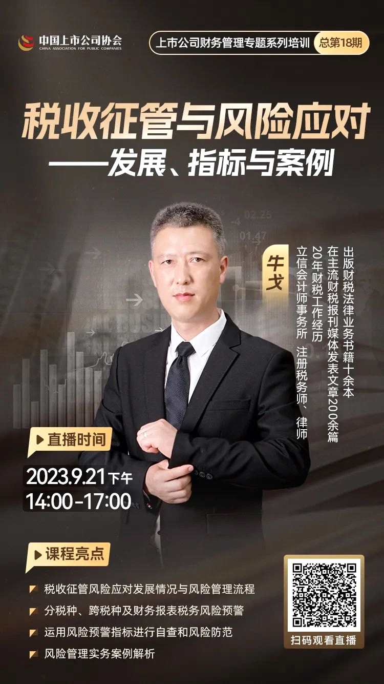關(guān)于舉辦“上市公司稅收征管與風(fēng)險應(yīng)對——發(fā)展、指標(biāo)與案例”(直播)的通知