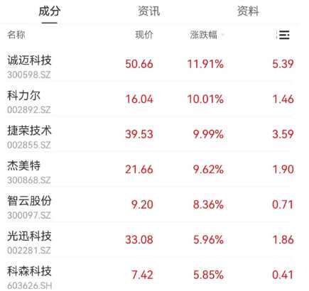 此外,華為概念股也大漲。捷榮技術(shù)(002855)漲停創(chuàng)新高,精倫電子(600355)、豐華股份(600615)、三聯(lián)鍛造(001282)、榮聯(lián)科技(002642)等十余股封板,誠(chéng)邁科技(300598)大漲超10%。
