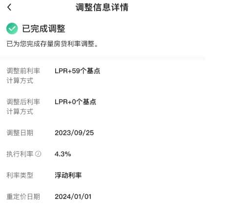 泰勒查了一下自己的,直接降了59個(gè)基點(diǎn),執(zhí)行利率來(lái)到了4.3%,由于泰勒的重定價(jià)日期是每年的1月1日,估計(jì)到了2024年起碼還能降到4.2%!