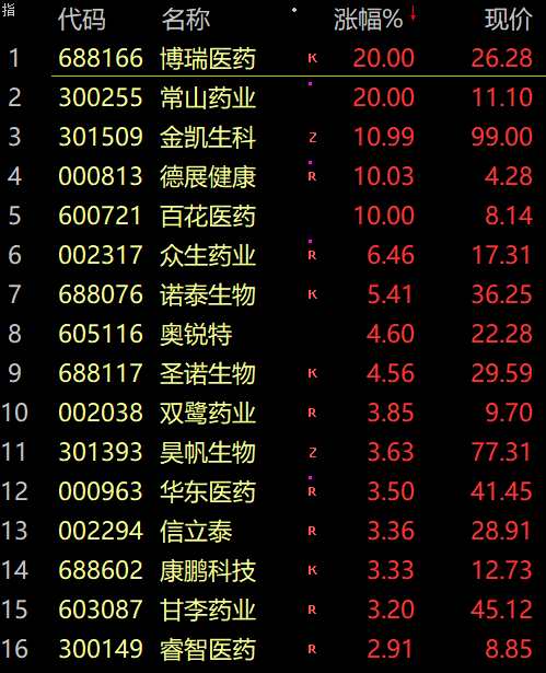 減肥藥概念股暴漲。博瑞醫(yī)藥、德展健康(000813)、百花醫(yī)藥(600721)、豐原藥業(yè)(000153)漲停,常山藥業(yè)(300255)、金凱生科(301509)漲超10%。