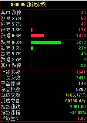 三大指數(shù)今天繼續(xù)調(diào)整,成交7186億元。截至收盤滬指跌0.54%,深成指跌0.57%,創(chuàng)業(yè)板指跌0.4%。兩市共1641只個(gè)股上漲,3496只個(gè)股下跌。