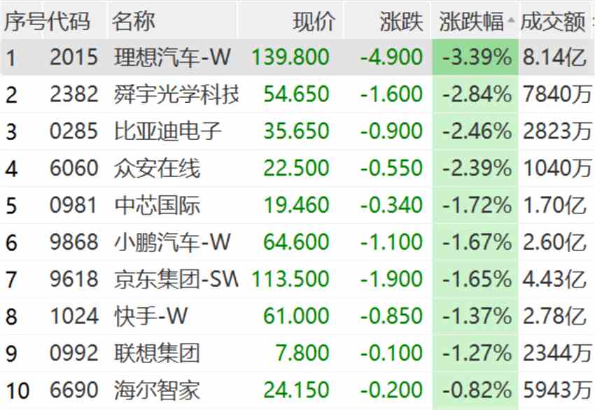港股市場早間低開:恒指跌0.38%,恒生國企跌0.4%,恒生科技跌0.42%。上午港股同樣走出V字,截至發(fā)稿跌幅有所收窄,理想汽車、比亞迪(002594)電子等領跌恒指。