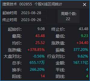 日K圖來(lái)看,捷榮技術(shù)不僅又收獲5連板,從8月28日起至今累計(jì)漲幅高達(dá)378.85%;(8月30日至今)20個(gè)交易日共15個(gè)漲停。