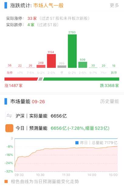 總體上個(gè)股跌多漲少,兩市超3300只個(gè)股下跌。滬深兩市今日成交額6656億,較上個(gè)交易日縮量523億。北向資金全天再度單邊凈賣(mài)出62.96億元,其中滬股通凈賣(mài)出29.83億元,深股通凈賣(mài)出33.13億元。