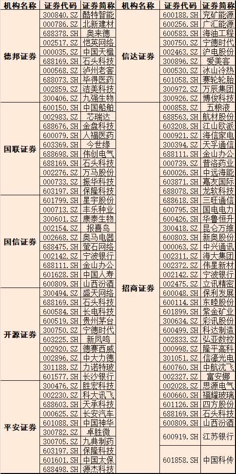 對于即將到來的10月份行情,機構(gòu)如何布局呢?數(shù)據(jù)顯示,截至9月27日發(fā)稿,國聯(lián)證券(601456)、國信證券、開源證券、平安證券、信達(dá)證券(601059)、招商證券、德邦證券等7家券商公布了10月份金股組合和策略,共有89只個股被推薦(不包括港股),石頭科技、寧波銀行、保隆科技(603197)、寧德時代(300750)、金山辦公、山西汾酒(600809)等個股獲券商集體看多。多數(shù)券商看好科技、消費、新能源等領(lǐng)域10月份的投資機會。