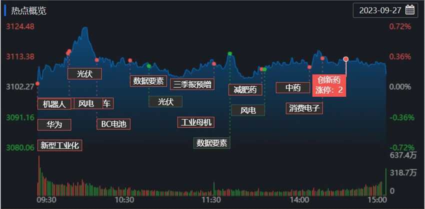 對于今日的市場走勢,涌貝資產(chǎn)基金經(jīng)理徐夢婧對記者表示,節(jié)前大盤延續(xù)縮量震蕩的行情。今日,新能源概念帶領(lǐng)大盤反彈,市場信心有修復(fù)的信號。雖然當(dāng)前積極因素正在增多,但信心恢復(fù)需要時間,所以利好政策尚未驅(qū)使加倉。另外,隨著超級黃金周來臨,投資者避險情緒上升,在沒有明確的趨勢性行情下,市場傾向于保留倉位做靈活應(yīng)對。