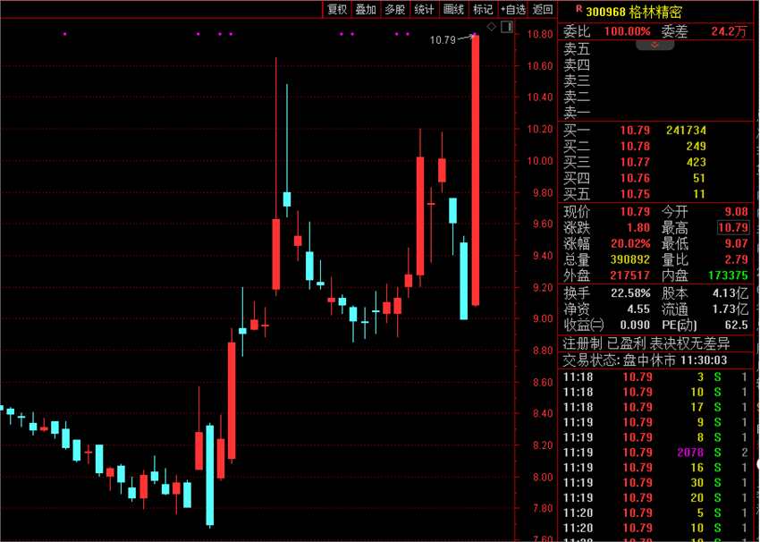 消費(fèi)電子概念早間放量高開高走,板塊指數(shù)盤中一度漲逾2%,半日成交接近昨日全天成交。格林精密(300968)20%漲停,創(chuàng)1年半來(lái)新高;光弘科技(300735)、惠威科技(002888)、好上好(001298)、冠石科技(605588)等漲?;驖q超10%。