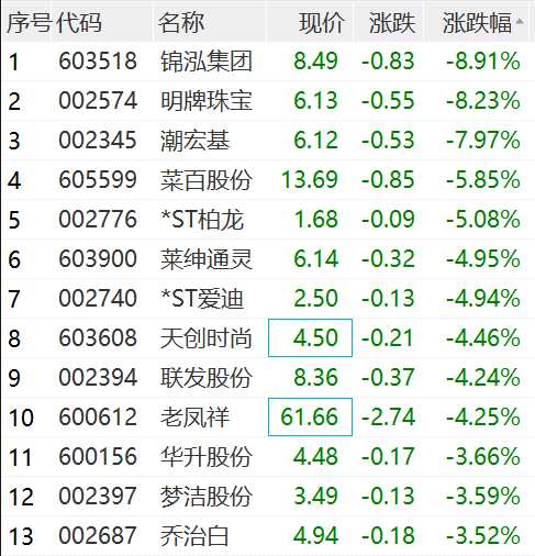 假期期間國際金價暴跌,上午黃金珠寶指數(shù)走低,明牌珠寶(002574)、潮宏基(002345)、老鳳祥、菜百股份(605599)等大跌。