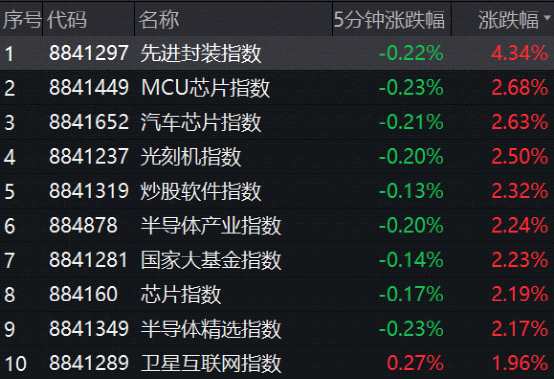 10月19日上午,芯片股繼續(xù)領(lǐng)漲市場(chǎng),先進(jìn)封裝、MCU芯片、汽車芯片、半導(dǎo)體產(chǎn)業(yè)、光刻機(jī)、存儲(chǔ)器等多個(gè)指數(shù)漲幅居前。