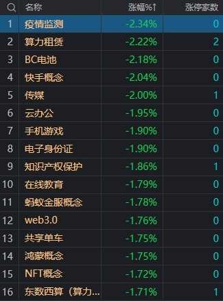 總體上個股跌多漲少,兩市超2700只個股下跌。板塊方面,燃?xì)?、醫(yī)藥商業(yè)、煤炭、存儲芯片等板塊漲幅居前,算力、BC電池、傳媒、鴻蒙概念等板塊跌幅居前。