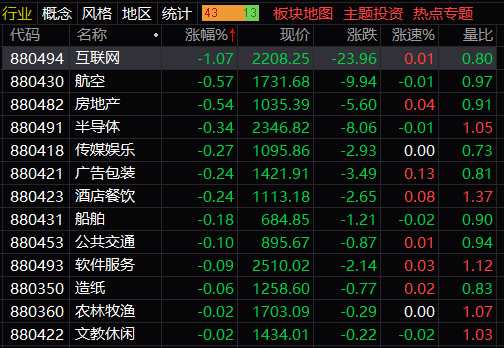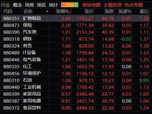 板塊方面:保險(xiǎn)、汽車、鋼鐵、有色、IT設(shè)備、石油等板塊漲幅居前;互聯(lián)網(wǎng)、房地產(chǎn)、航空、酒店餐飲、半導(dǎo)體等板塊跌幅居前。