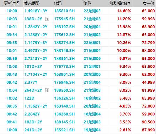 地產(chǎn)債同受鼓舞,多只龍湖債、金地債漲超10%。