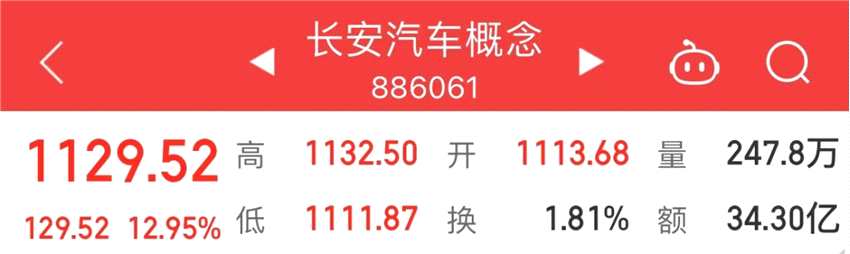 從昨晚開始,長安汽車就刷屏投資圈,高居多個股票論壇人氣股排行第一。今天上午,長安汽車“一”字漲停。同花順(300033)軟件新增“長安汽車概念”,暴漲12.95%,領(lǐng)漲A股板塊概念漲幅榜。