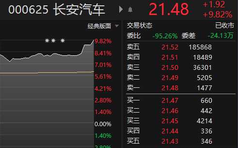 長(zhǎng)安汽車逼近漲停創(chuàng)歷史新高