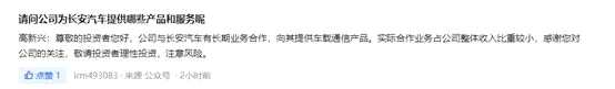 高新興(300098)在互動(dòng)平臺(tái)表示,公司與長(zhǎng)安汽車有長(zhǎng)期業(yè)務(wù)合作,向其提供車載通信產(chǎn)品。實(shí)際合作業(yè)務(wù)占公司整體收入比重較小。