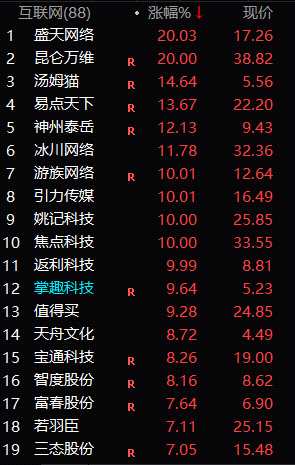 互聯(lián)網(wǎng)概念股大爆發(fā) A股盤(pán)中異動(dòng)滬指微幅收漲