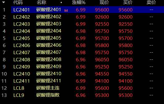期貨市場(chǎng),此前連續(xù)大跌的碳酸鋰,今日終于迎來(lái)大反彈,截至午間收盤(pán),所有合約品種全線漲停。