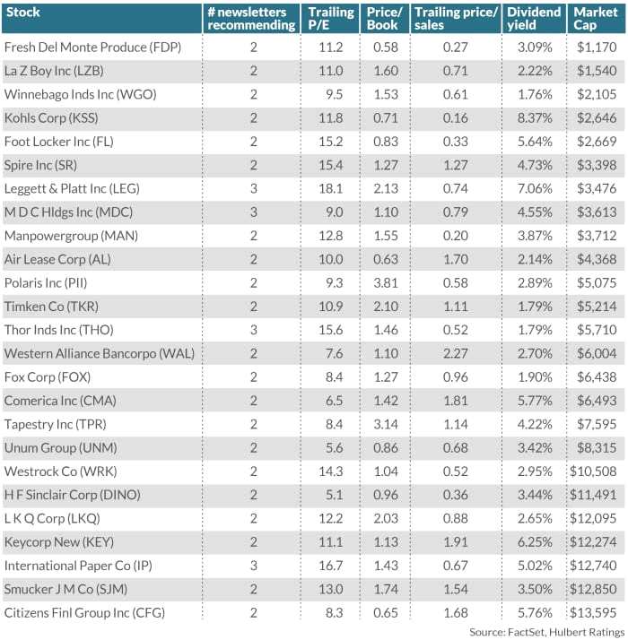該表按市值順序列出了這些股票,市值最小的在最上面。