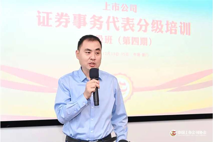 12月13日至15日,由中國上市公司協(xié)會主辦的第四期“證券事務代表分級培訓”高級班在廈門舉辦,來自滬深北各交易所的上市公司董秘、證代和董辦工作人員參加了此次培訓。中國上市公司協(xié)會黨委委員、副秘書長潘廣標出席開班儀式并致辭。