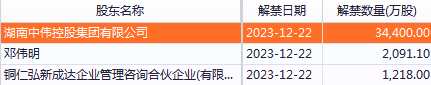 本周解禁數(shù)量最多的是舒華體育(605299),中偉股份(300919)有3.77億股限售股將在12月22日到期,占總股本比例達(dá)56.3%,市值約為169.31億元,占本周總量的21.4%,解禁明細(xì)如下: