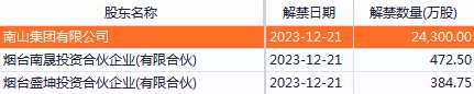 南山智尚將有2.5億股首發(fā)原股東限售股份在12月21日到期,占解禁前流通股比例為232.02%。本次解禁明細(xì)如下: