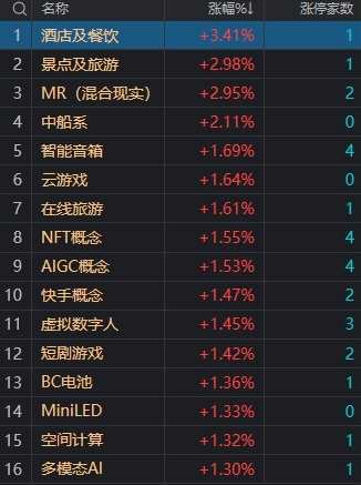 盤面上,AI應(yīng)用方向再度活躍,其中短劇方向展開反彈,元隆雅圖(002878)漲停;多模態(tài)概念股震蕩走強(qiáng),天娛數(shù)科(002354)漲停;MR概念股盤中活躍,億道信息(001314)漲停。旅游酒店股集體走強(qiáng),曲江文旅(600706)、西安旅游(000610)漲停。peek概念股持續(xù)走強(qiáng),中欣氟材(002915)、中研股份漲停。下跌方面,物流股陷入調(diào)整,音飛儲(chǔ)存(603066)等多股大跌。