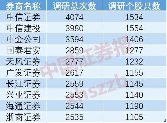 今年以來累計(jì)調(diào)研次數(shù)居前的券商