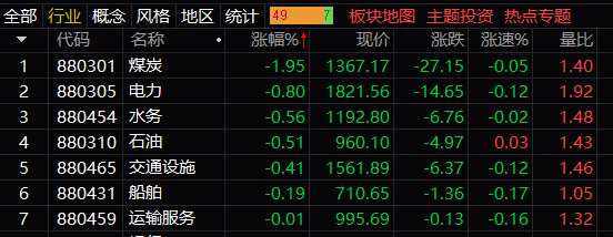 兩市僅煤炭、電力、石油、水務(wù)、船舶后等少數(shù)板塊仍舊下跌狀態(tài)。