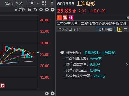只是有一點(diǎn)彩蛋可以分享給大家——《繁花》的出品方之一上海電影(601595)(集團(tuán))有限公司,旗下上市公司上海電影今天漲停了。雖然前兩天公司股價波瀾不驚,但后續(xù)可以觀察股價走勢與該劇口碑是否有相關(guān)性。