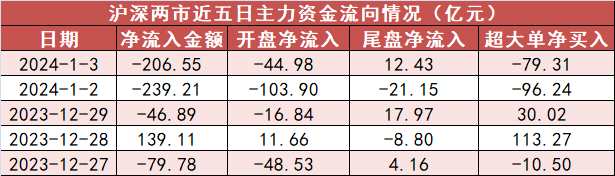 今日A股市場(chǎng)主力資金開(kāi)盤(pán)凈流出44.98億元,尾盤(pán)凈流入12.43億元,A股市場(chǎng)全天資金凈流出206.55億元。