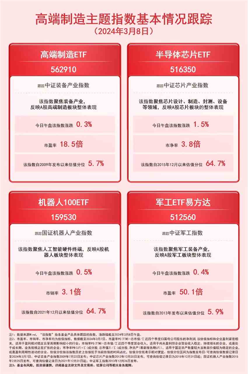 高端制造主題午盤(pán)收漲!高端制造ETF、半導(dǎo)體芯片ETF等“高端制造”主題產(chǎn)品受關(guān)注