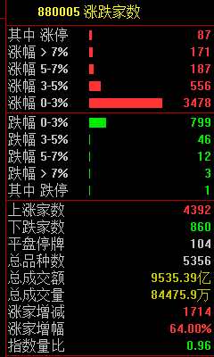 個股漲多跌少,市場共4392只個股上漲,860只個股下跌。北向資金全天凈買入103.26億!
